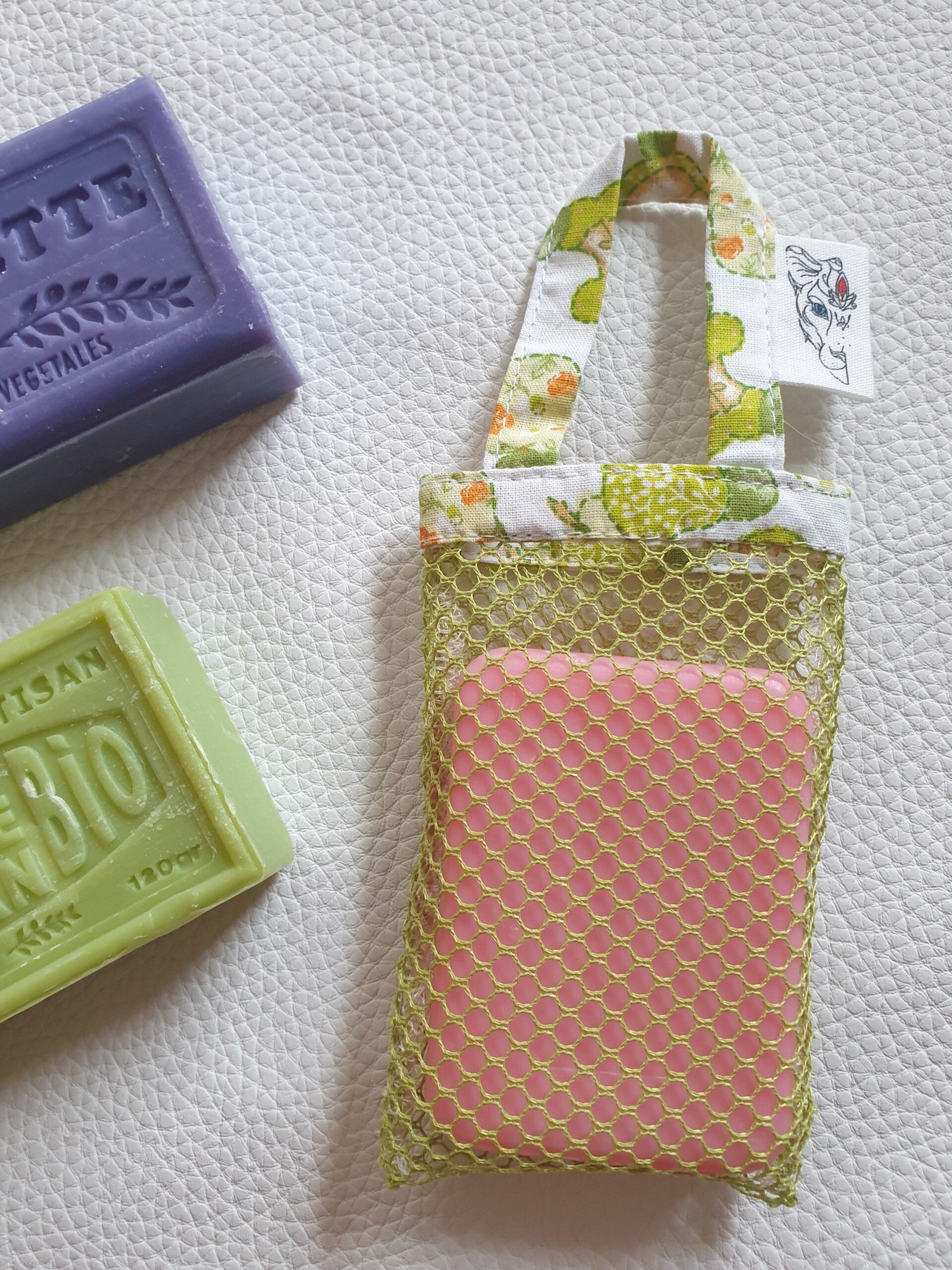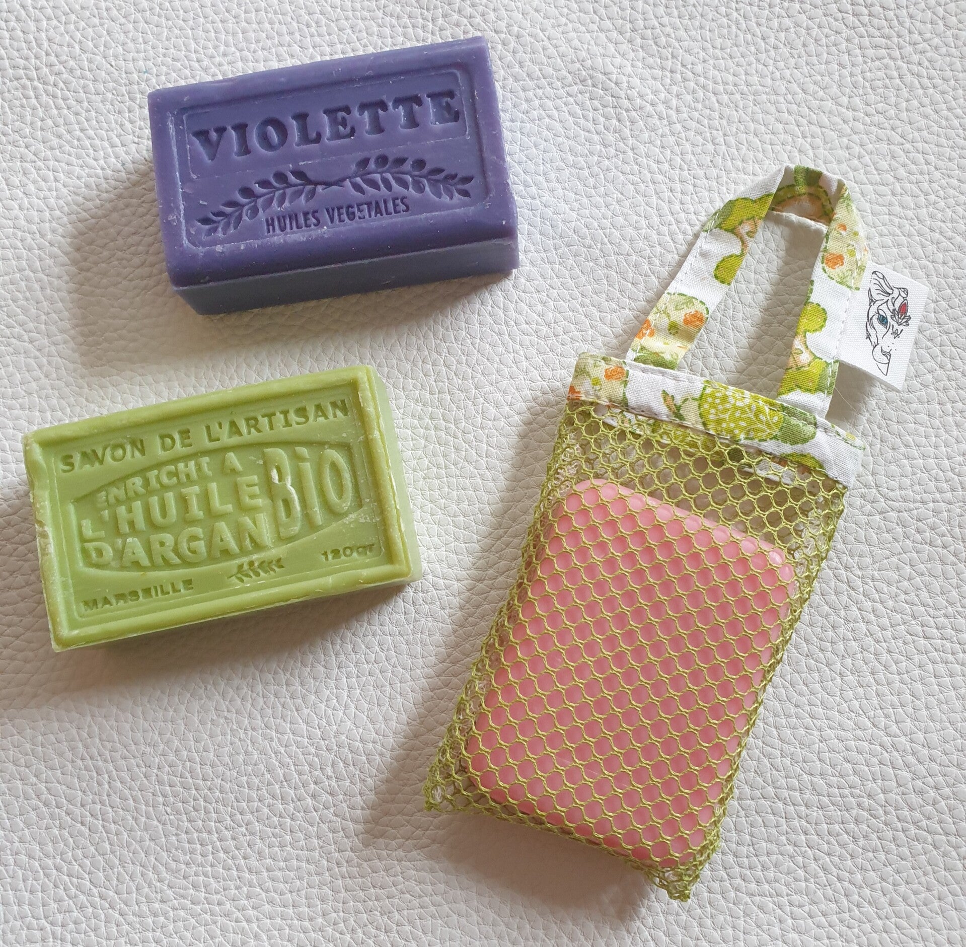 1. Mettez votre savon, votre shampoing solide, les restes de savon ou de shampoing dans le filet à savon.