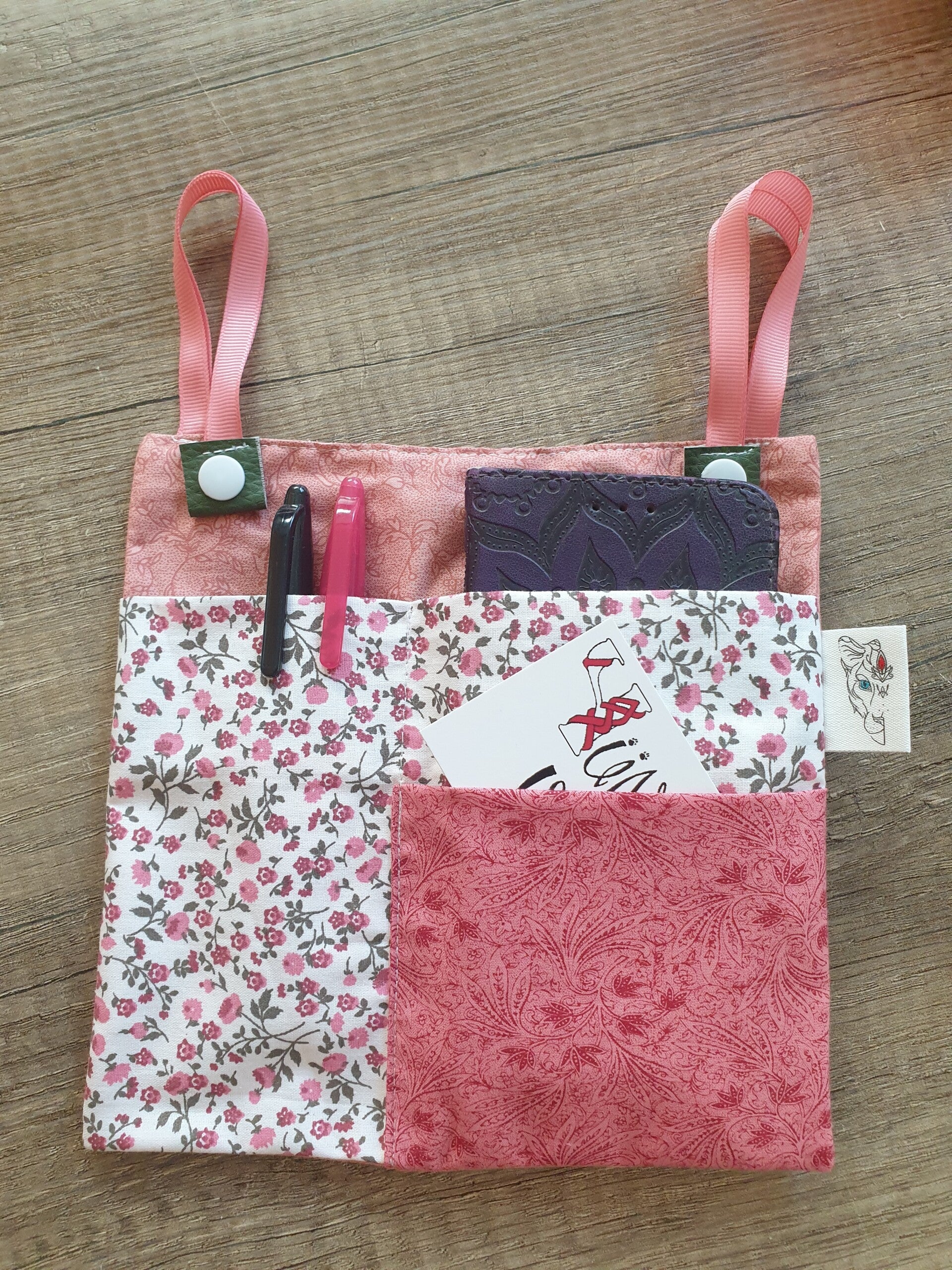 Organiseur de sac, petit plus très pratique, qui s'accroche dans tous vos sacs grâce à ses deux petites attaches prévues pour venir s'enrouler autour des poignées, fixées par des petites pressions, afin de vous offrir des poches supplémentaires.