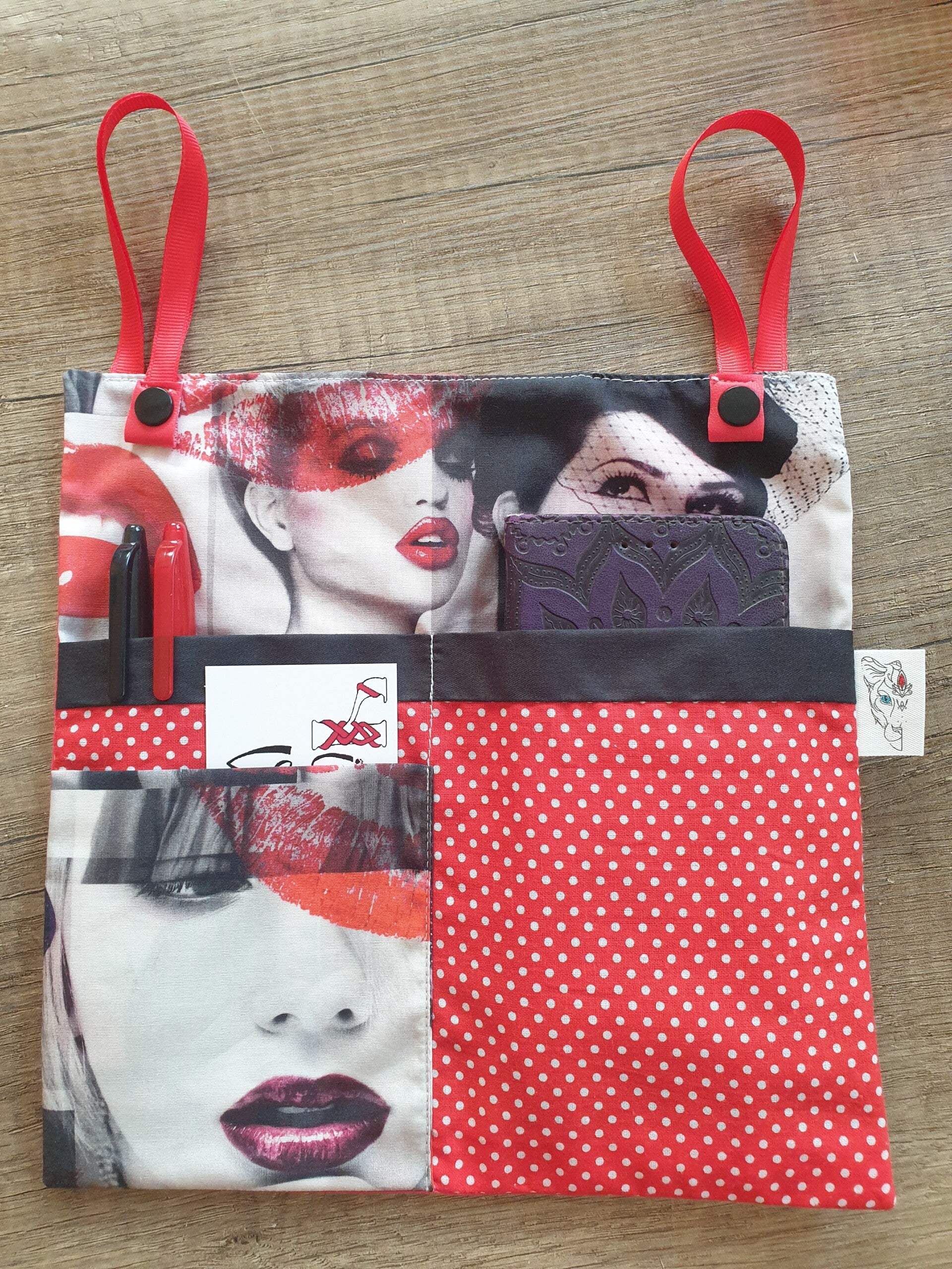 Organiseur de sac, petit plus très pratique, qui s'accroche dans tous vos sacs grâce à ses deux petites attaches prévues pour venir s'enrouler autour des poignées, fixées par des petites pressions, afin de vous offrir des poches supplémentaires.